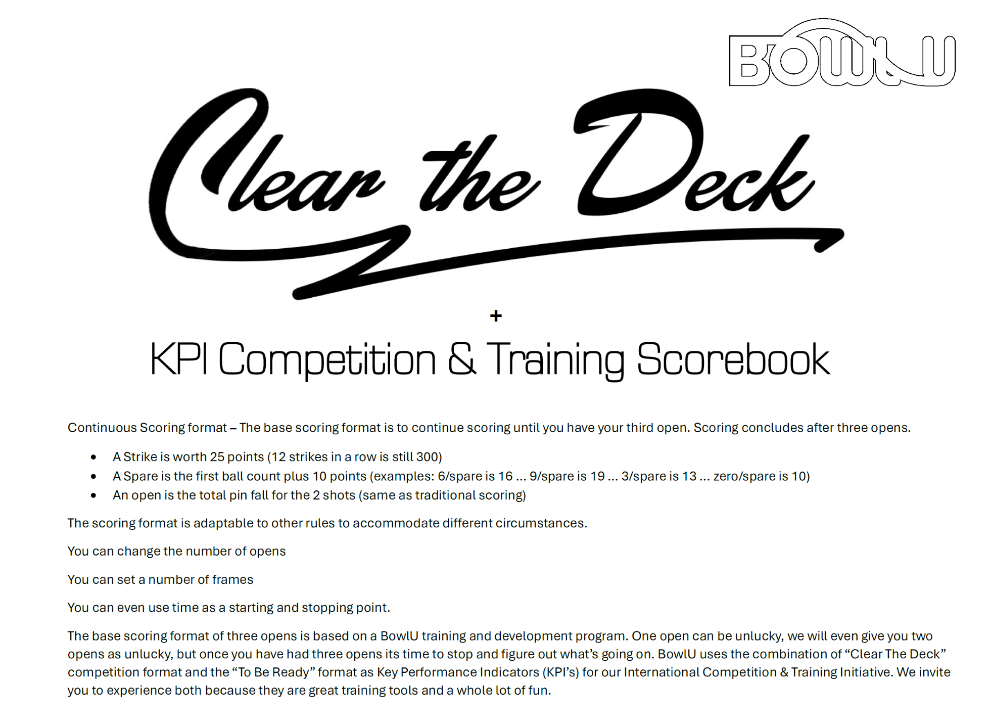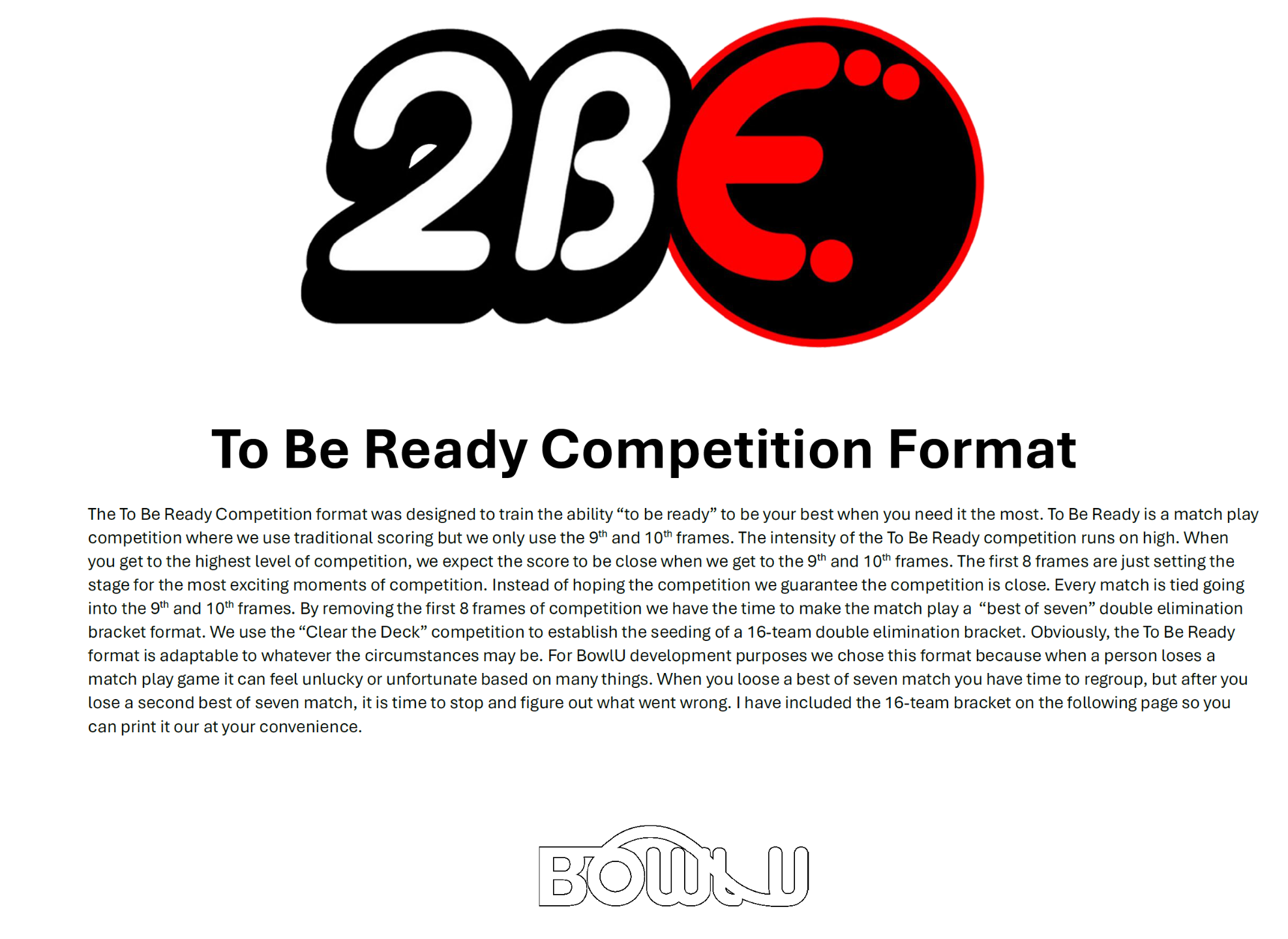 Seeding for the To Be Ready matchplay bracket will be determined by Clear the Deck qualifying scores. We will schedule a live Team BowlU competition for each match.